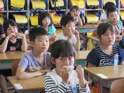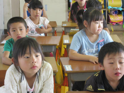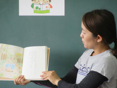 1年生は、担任の先生が読み聞かせをしてくれていました。まだ自分たちで読書をすることができないので、先生の読んでくれる本をしっかり聞いていました。