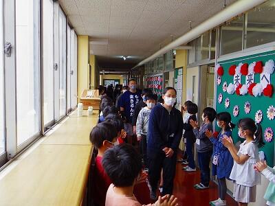 来週の月曜日が卒業式です。1年生から5年生は卒業式に参加できませんので、今日の朝、卒業生と在校生のお別れ式(歓送式)が行われました。通学班でお世話になったお兄さんお姉さん、お友達になった親しい顔を見つけると、手を振ったり、にこっとしたり、おめでとうございますと声と声がかかっていました。卒業生のリクエストで「最後に南小のチャイムが聞きたい!」とのことで、チャイムを鳴らしてから、歓送式を始めました。卒業生の皆さんの門出をお祝いする温かな会になりました。