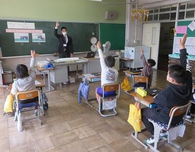 5年生の教室に行くと、道徳『友の肖像画』という資料をもとに学習していました。事前のアンケートを大型モニターに映し出して提示したり、意見交換の時にchromebookのジャムボードを使って意見を書き、クラス全体の傾向を図に示したりと、ハイテクな授業でした。