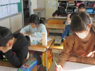 今日は、国語のチャレンジタイムでした。2年生は、文章題の読み取りを行っていました。まず文章をよく読んで答える問題です。しっかりと読んでいました。