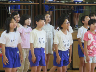 5年生が、来週行う音楽朝会の合唱の練習をしていました。『はじめの一歩』の歌を、少しだけ楽器を入れて綺麗な歌声を響かせていました。