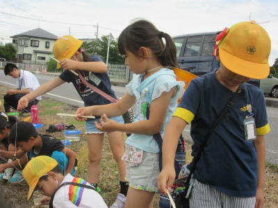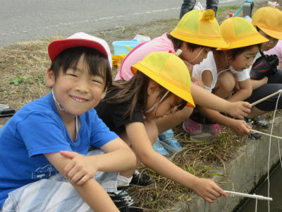 一斉にスタートして、すごい子は、すぐに5、6ぴきつっていました。1人1人のえさが違うので、つれるえさがあるようです。とても楽しかったようです。