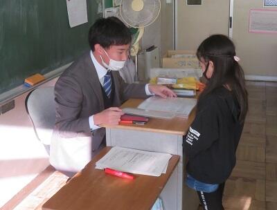 各クラス、それぞれのスタイルで通知表を渡していました。共通していたのは、渡す際に、2学期のその子の頑張りを具体的にほめていた所。神妙な顔で聞いていましたが、ほめられたときは、にっこり。家に帰ったら、もう一度ゆっくり見て、先生からの言葉を読んで、令和3年の、3学期の目標を立ててください。