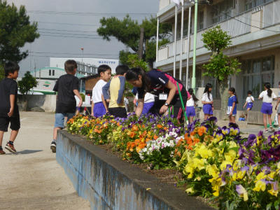 金曜日には、ボランティアの大学生が一緒に活動しています。