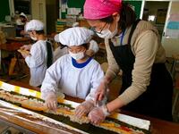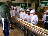 みんなで協力して、長~いのり巻きを作ります。