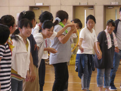 4年生が学年活動を行いました。輪送りリレーを行いました。手をつないだまま、大きな輪を送っていきます。体を曲げたり、縮めたりして楽しそうにやっていました。大人の方が速かったです。