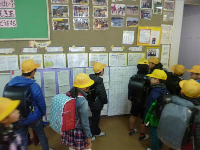 第一校舎昇降口に掲示したところ、早速、みんな興味津々です。