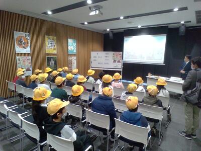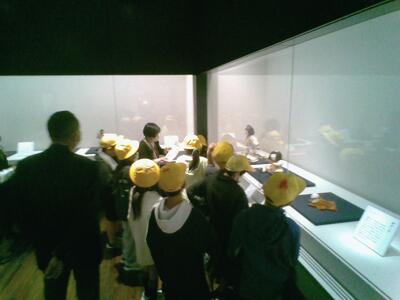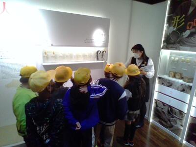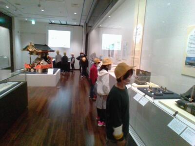 はじめに、バスで向かったのは岩槻の人形博物館です。岩槻の雛人形の製作工程や、そこで使われる道具、その歴史にふれます。春日部の伝統工芸とつながるところもあり、子どもたちは興味をもってお話を聞いていました。