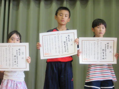 今朝は、表彰朝会でした。主に硬筆展と体育関係の表彰を行いました。硬筆展では、校内硬筆展・市内硬筆展・県展と3つの表彰をしました。
