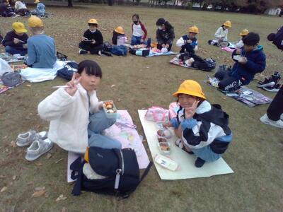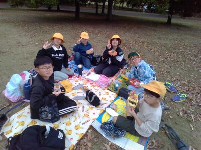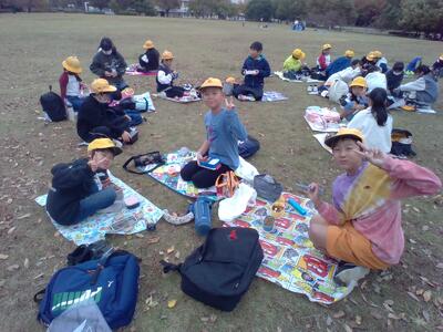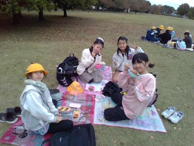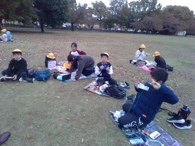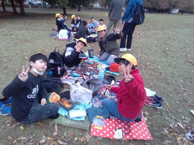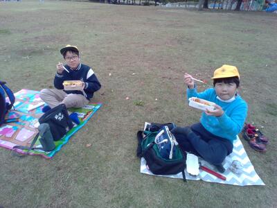 川越の運動公園で昼食です。みんな、お弁当を楽しみにしていました。おいしくいただきます。