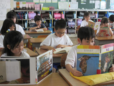今日は、朝読書でした。低学年の子どもたちも、しっかりと自分の好きな本を読んでいました。本は、心の栄養ですので、しっかり身につけてください。