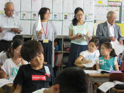 学校評議員会がありました。全クラスを見てまわって、子どもたちの成長を見てもらいました。歌を歌っているクラスや発表会をしているクラスなど、工夫して授業をやっていました。