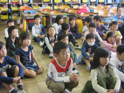 1年生の読み聞かせは、『どうぶつ しんちょうそくてい』のお話でした。かばやゴリラやキリンの身長測定があり、とてもおもしろそうでした。