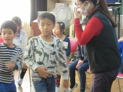 ハロータイムで、2年生の子どもたちは、フルーツバスケット形式で、自分の持っている鉛筆の色で動いていました。ゲームをしながら、会話をしていくのがとても楽しかったようです。