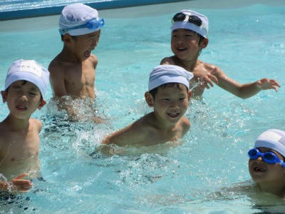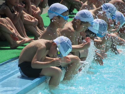 1年生も、楽しそうに水泳学習をしていました。1・2・3という風に、もぐる練習をしていました。だいぶ水に慣れてきたようですね。