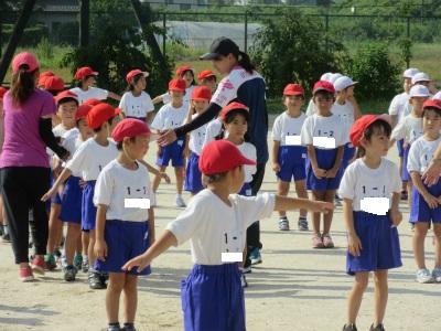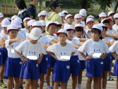 今日、初めての全体練習がありました。運動会の隊形を確認して、準備運動までを行いました。1年生が基準なので、とても重要な位置にいます。頑張ってください。
