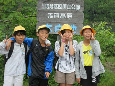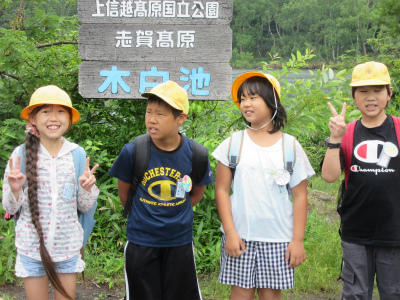 木戸池のハイキングをスタートしようとしていたときに、強い雨が降り、一時バス待機になりました。10分程度、見守っていると雨が小降りになってきたので、いよいよスタートになりました。