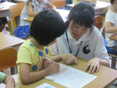 ふれあい体験の学生が、今日は、1年生に入りました。とても小さい1年生なので、すごくかわいがっていました。学年によって、発達段階が違うので、とても勉強になったようです。