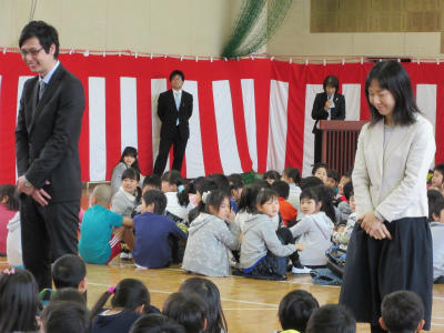 子どもたちがいちばん楽しみにしていた担任発表がありました。学年の前に、担任の先生が立ち、子どもたちとの初めての出会いとなりました。どのクラスも、うれしそうな顔をしている子どもたちが印象的でした。