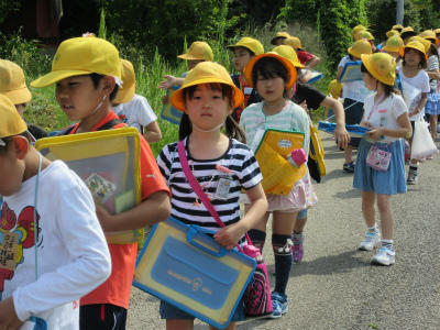 3年生が、社会科の学習で、学校の周りの様子を調べに行きました。今回は、イオンモール方面の南西の方へ行ってきました。