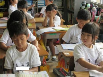 1年生も、漢字に取り組んでいました。できたら、すぐに先生に持って行く子もいました。先生に〇をもらうと、とても喜んでいました。
