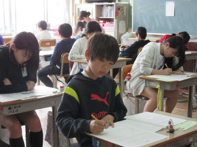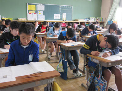 6年生は、県の学力テストが終わったばかりなのに、今度は、全国学力学習状況調査を行いました。国語のA問題・B問題、算数のA問題・B問題、質問紙に分かれていました。どの子も真剣に頑張っていました。
