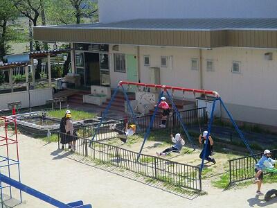 業間休みには、校庭で元気に遊ぶ子どもたちの姿と、