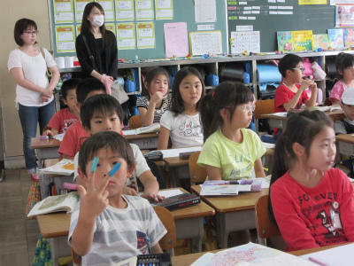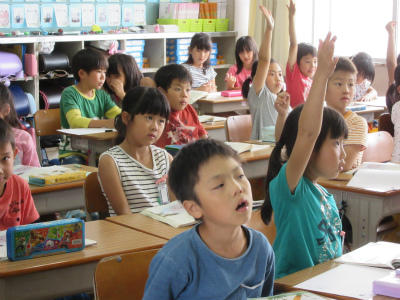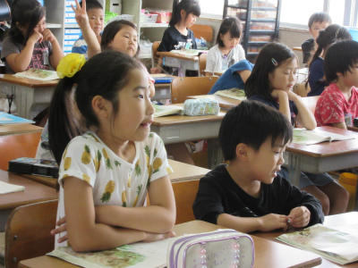 2年生は、5時間目に教室で国語の授業をしていました。先生の発問に、みんなが食いついて真剣に発表していました。