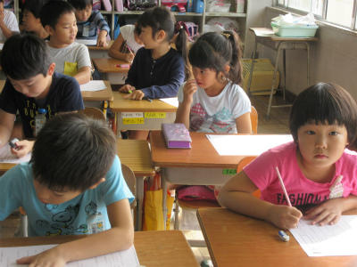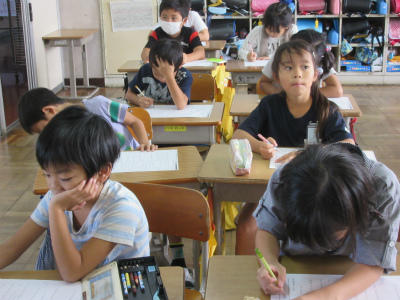 今日のチャレンジタイムは、国語でした。2年生は、文章問題を読み取る問題でした。文を読んで、真剣に考えていました。