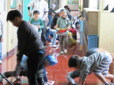 給食が終わると、清掃活動になります。どの学年の児童も、三角巾をかぶって一生懸命仕事をしてくれています。これからも、sっかり学校をきれいにしてください。