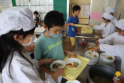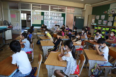 本日は、土曜日ですが、授業日です。雨が降る中、子どもたちは登校しています。欠席者も少なく一桁です。