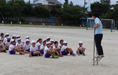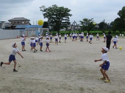 先週は雨続きだったので、校庭で体育をしたり、遊んだりすることができませんでした。今日もいい天気とはいきませんが、降雨がないので校庭が使えます。