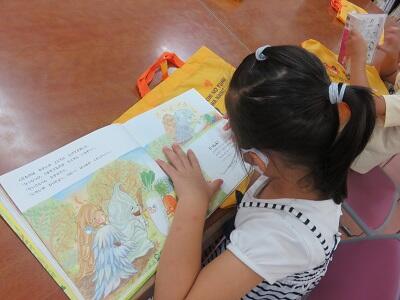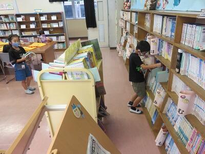 1年生が、右側を静かに歩いていました。だれもしゃべっていません。すばらしい!最後尾について一緒に歩いていくと図書室に着きました。先生の話を聴いてから、読みたい本を選び、席に着き、本を読み始めました。だれもしゃべりません。