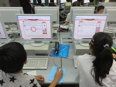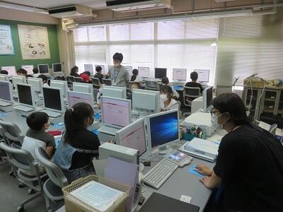 4年生がパソコン室でラインズeライブラリーの使い方を学習していました。万が一、再度学校閉鎖になったときのために使い方の手順を復習しました。中には、6単元ほど休校中に学習していた子もいました。
