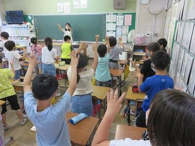 3年生の教室に行くと、授業の最初にユニークなことをやっていました。