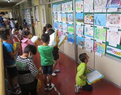 2年生の教室に近づくと、廊下に出て活動していました。図工で描いたお友達の作品を見て、いいなあと思ったところやすごいなあと思ったところをみつけて、メモしていました。友達の良さを認め、取り入れられることは取り入れて互いに成長していければいいですね。