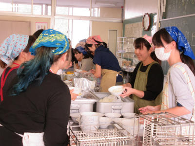 もう1つの教室は、料理でした。料理は、いちばん人気で、たくさんの人がいました。今日のメニューは、あんかけ焼きそばです。野菜や焼きそばを炒めながら、楽しい活動が続きました。