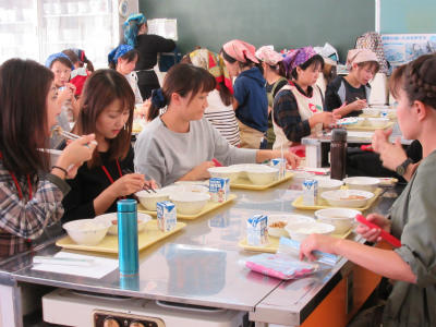 あんかけ焼きそばができあがったら、すぐに食べたそうでした。1口食べて、おいしいという声が聞こえてきました。みんなで協力して、おいしくできてよかったですね。