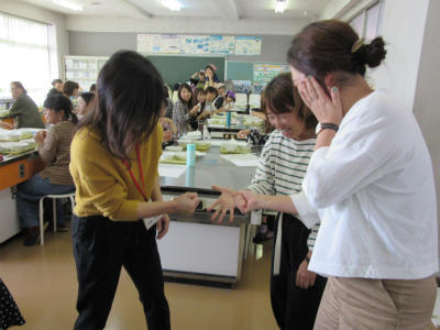 今日は、6年生がいなかったので、給食試食会がありました。今日の献立は、ご飯、牛乳、ぼうぎょうざ、チンジャオロース、ワンタンスープでした。44名の保護者の方が、『おいしい』と言って食べていました。最後に、お替わりをジャンケンで決めていました。