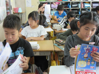 クラスのよっては、担任の先生が『読み聞かせ』をやっていました。3年生は、『ジュゲム、ジュゲム ……』の本を読んでいました。一緒に、名前を読む場面もありました。