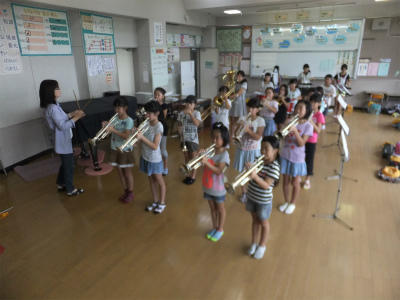 昨日、今日と9月の運動会に向けて、金管クラブの練習が行われました。