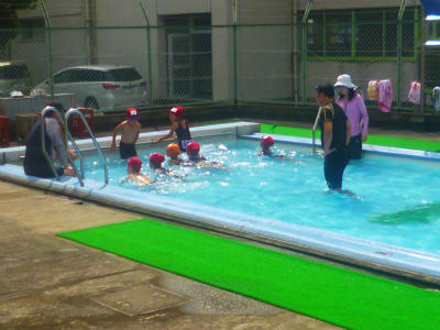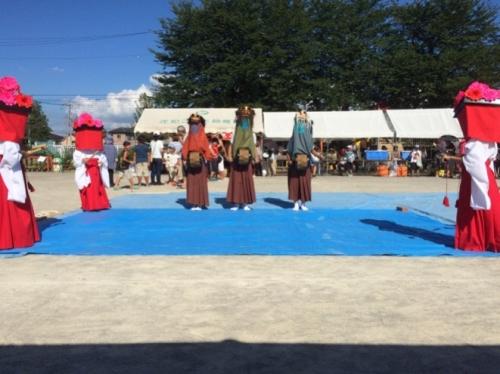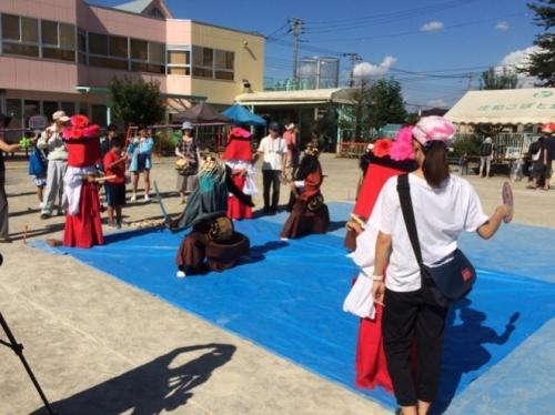 庄和こばと幼稚園で行なわています、西金野井東地区納涼祭に、伝統芸能クラブ児童が参加して、獅子舞を披露しています。