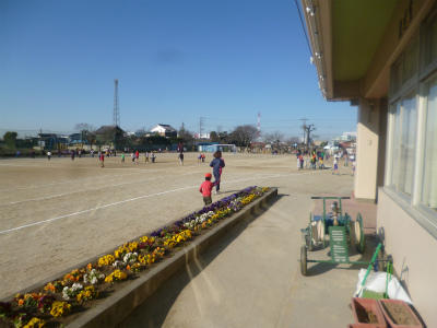 校庭で元気に過ごしたり、花へのみずやりとがんばっています。