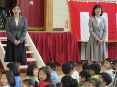 新1年生のために、最高学年の6年生が歌の歓迎をしてくれました。入学した1年生は、6年生の歌を目を丸くして聞いていました。お兄さん、お姉さんとしっかり仲よくしてください。