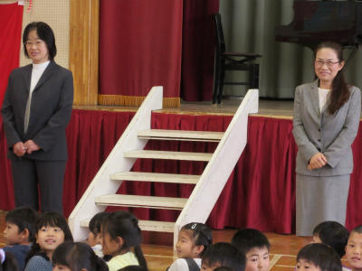 今日、本校を去られた7名の先生方が、来られました。子どもたちは、ほんの3週間の間ですが、とても懐かしく先生方の話を聞いていました。