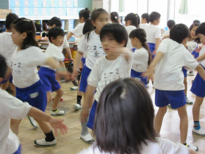各学年とも、身近な体操なので、手や足を動かして楽しそうに活動していました。6年生は、1年生のために前に出て、しっかり教えていました。