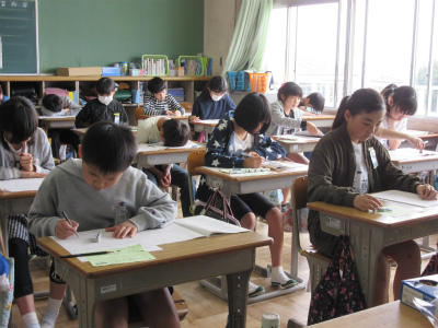 6年生は、県の学力テストが終わったばかりなのに、今度は、全国学力学習状況調査を行いました。国語のA問題・B問題、算数のA問題・B問題、質問紙に分かれていました。どの子も真剣に頑張っていました。