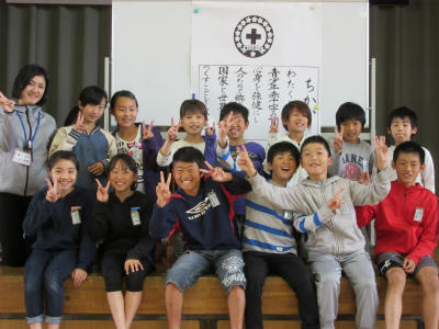 JRC登録式では、1年間の活動報告がありました。5月30日のクリーンパトロールをスタートに、緑の羽根募金、赤い羽根募金、エコキャップ集め、災害募金活動など、たくさんの活動があります。1人1人の活躍を期待しています。