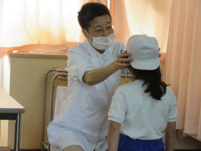 4月は、いろいろな健康診断の検査が多いです。今日は、視力検査を低学年がやっていました。最初の注意をよく聞いて、1人1人しっかりやっていました。