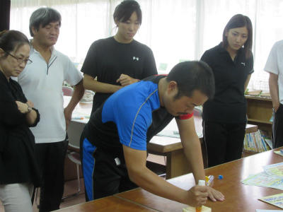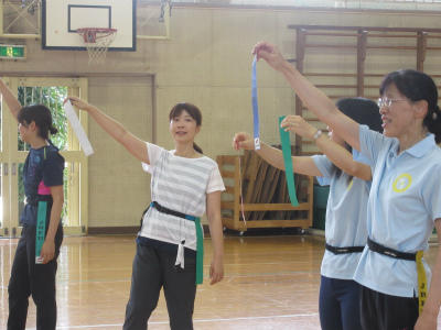 夏休みも、終わりに近づいていますが、先生方も校内研修に励んでいます。今日は、体育実技の研修と人権教育の研修、エピペンの研修会を行いました。体育の研修では、2学期に使えそうな教材を、実際に実技を通して実践して見ました。